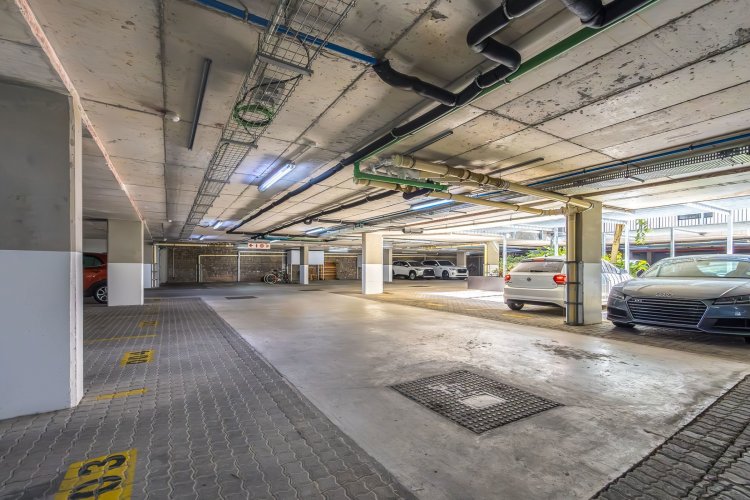 Innovative building features include a centralized heat pump delivering instant hot water at lower energy costs, rainwater harvesting systems supporting communal areas and park irrigation, and two lifts enhancing everyday convenience. Security is comprehensive — with 24/7 video surveillance, controlled access to basement parking and building entrances, dedicated weekend and night-time security teams, and an on-site building manager available during office hours.