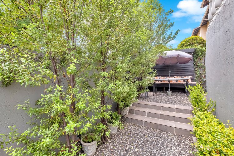 Step into style and elegance - Open plan lounge and diningroom area with modern kitchen, Smeg gas hob and electric oven, 2x appliance space. Storage cupboard. Principal bedroom with an open ensuite bathroom, shower, basin, and toilet. Additional bedroom. 2nd bathroom bath, basin and toilet. Private, quaint garden with balcony overlooking views of the surrounding suburbs. A peaceful escape from city life.