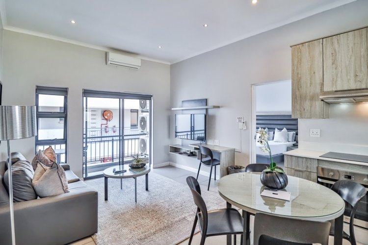 Experience stylish urban living in this beautifully furnished apartment at 7 on Middle, a secure and sought-after complex ideally situated in the heart of Barbeque Downs, Midrand.