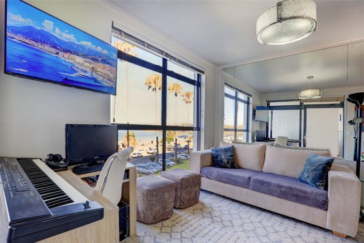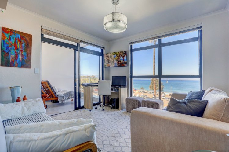 This fully renovated beachfront apartment is positioned directly alongside Santos Beach, offering practical coastal living in a well-established seaside town known for its mild climate.