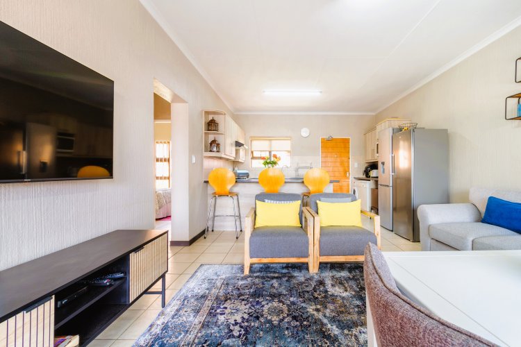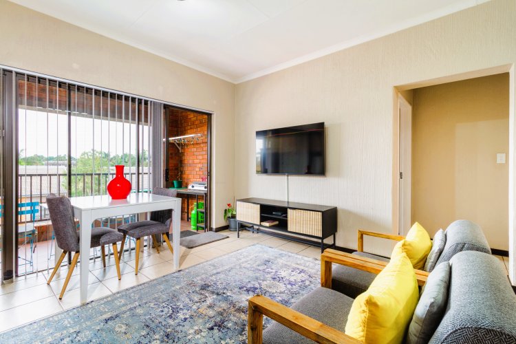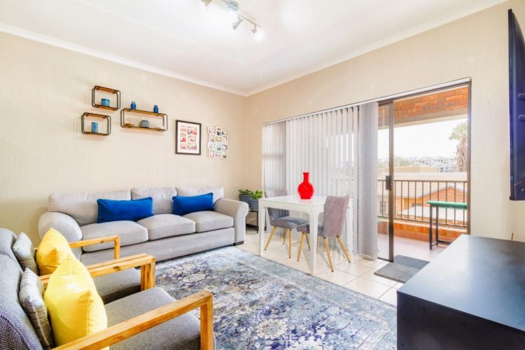 The tiled living area can accommodate a sizable lounge suite and small 4-seater dining table. Boasting a fluid floor plan - this home has been designed for quality time and entertaining. Through glass sliding doors, capturing natural rays of light - walk onto a covered balcony.