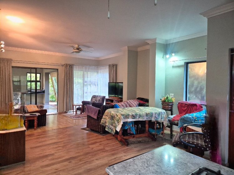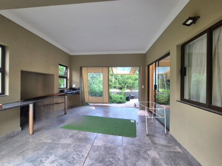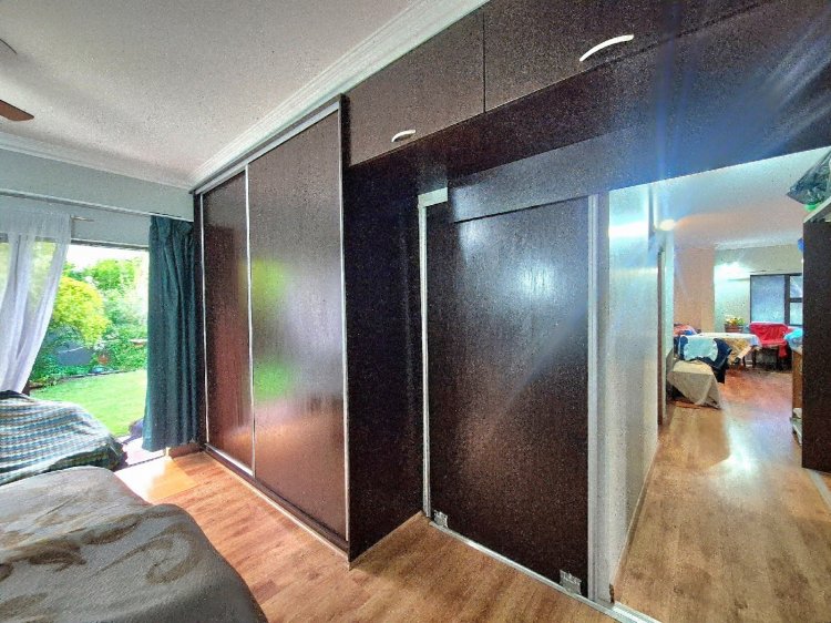 Verder langs die kort gang is ’n groot skuifdeurkas vir ekstra stoorplek, met die gastebadkamer aan die regterkant. Die gastekamer—met ’n deur wat ook na die tuin lei—is direk oorkant die badkamer geleë. Van hier af stap jy in die oopplan kombuis-, eet- en sitkamerarea wat vloei na die lapa. Die lapa, met twee oop kante, bied ’n pragtige uitsig oor ’n rustige park waar wild (verskeie diersoorte) gereeld gesien word en ’n ryk voëllewe teenwoordig is.