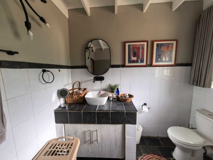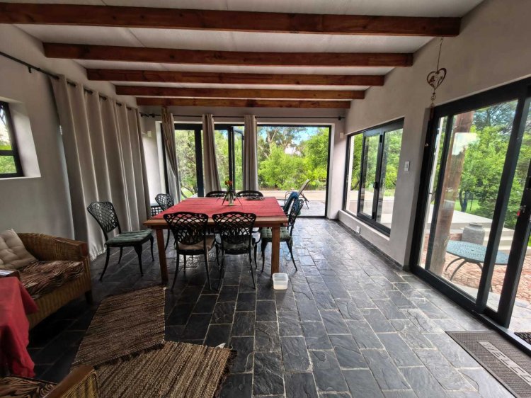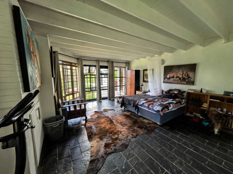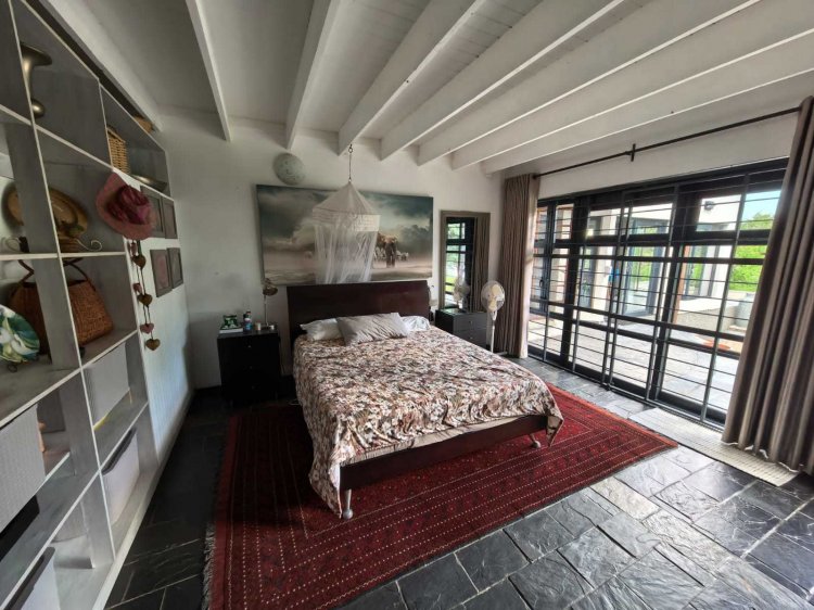Additional features include a borehole and a solar system with eighteen panels, two invertors and three 5KW batteries. For added security there is armed response, outside beams, an electric fence and the property is well lit.
