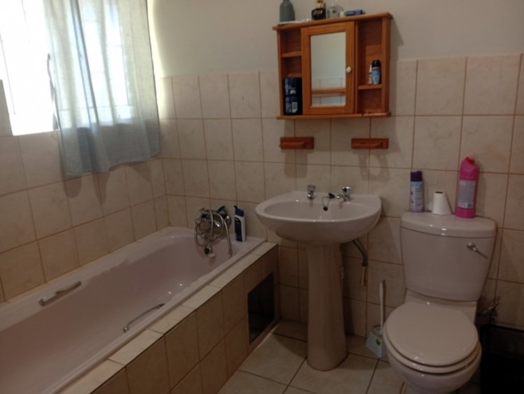 The home features: 2 Bedrooms with built-in cupboards Main bedroom with en-suite bathroom (bath, basin, and toilet) Second bathroom with shower, basin, and toilet — perfect whether you prefer a bath or a shower