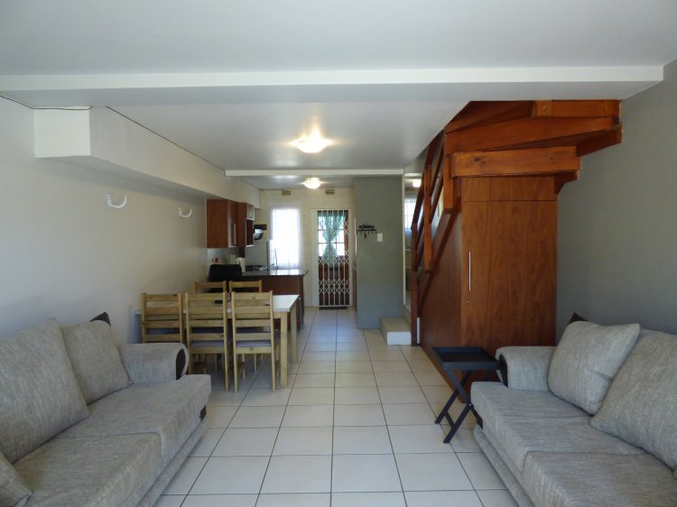 Located in West Beach Drive, this duplex offers the convenience of being within walking distance to the beach. Whether you’re looking for a lockup and go holiday retreat or a sound rental investment, this property is an excellent choice. The ground floor features a spacious living area that flows to a front stoep and braai area, ideal for relaxed entertaining. The newly renovated kitchen is fitted with granite countertops and leads to an enclosed back courtyard. A guest toilet downstairs adds to the practicality when hosting friends and family. Upstairs, a full bathroom serves two comfortable bedrooms, both with built-in cupboards and carpeted floors. The main bedroom includes a private balcony overlooking the complex, with partial canal views that enhance the seaside feel. Well maintained and move in ready, this unit presents a great opportunity. Arrange your viewing today.