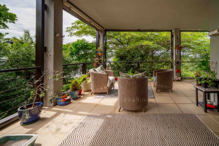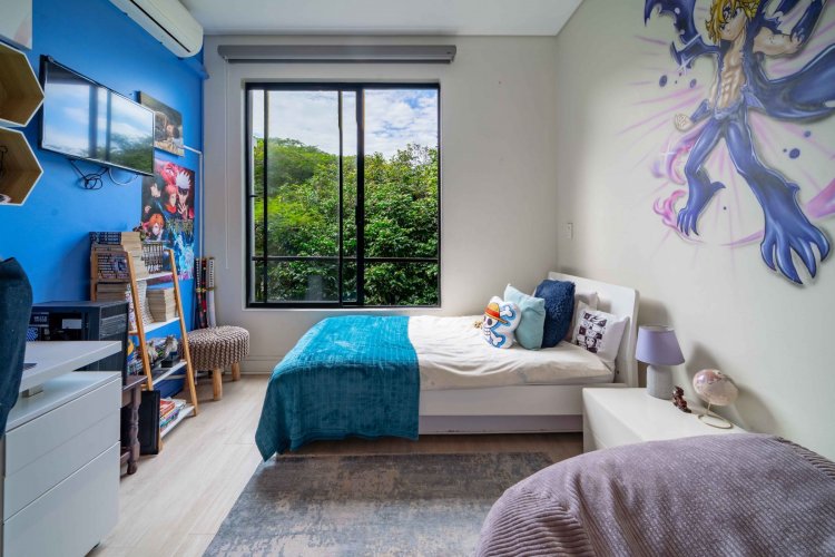 This spacious apartment combines modern living with a serene natural setting. The open-plan layout connects the kitchen, dining, and lounge areas effortlessly, leading out onto a private balcony – perfect for entertaining or simply unwinding while enjoying peaceful forest views.