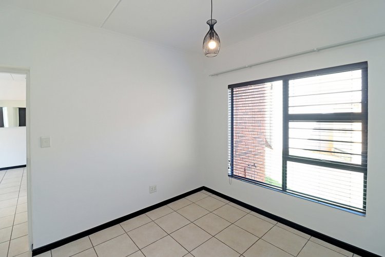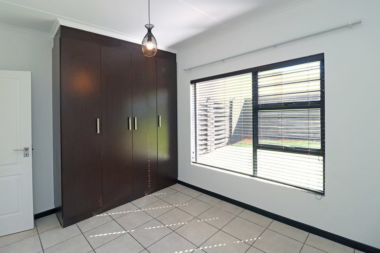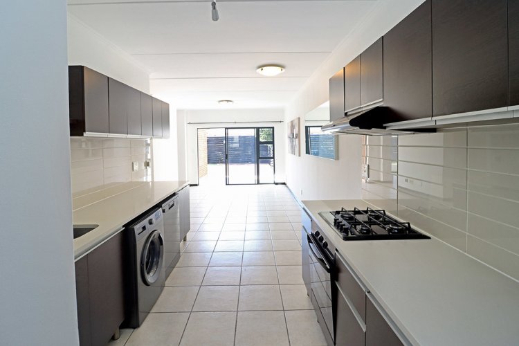 This modern corner garden unit offers 3 bedrooms and 2 bathrooms (main en-suite), featuring an open-plan lounge and a well-equipped kitchen with built-in cupboards, stone countertops, and quality appliances. The living area opens onto a semi-covered patio and a large private garden enhanced with additional decking and a foldable washing line. Situated within the secure Greenstone Gate complex, residents enjoy access to a clubhouse, swimming pool, running track, and children’s play areas.