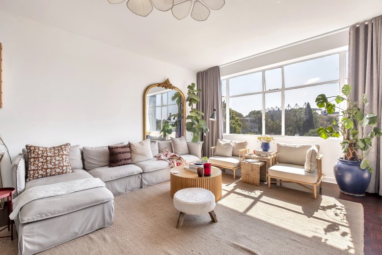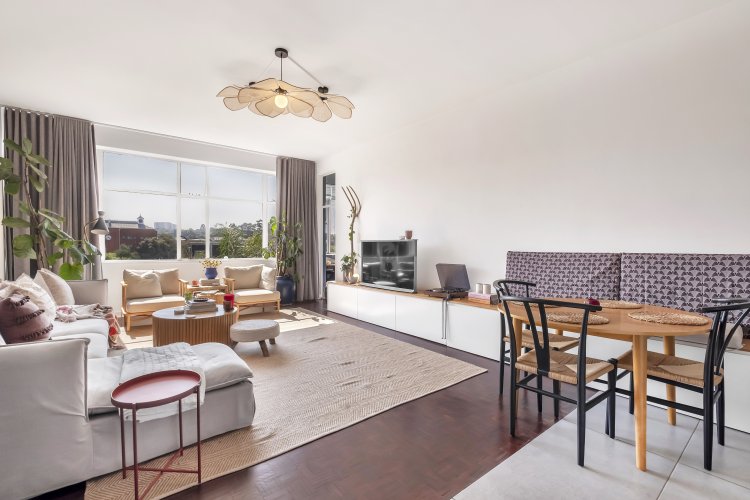Light & airy north facing generous open plan living spaces with high ceilings, parquet flooring. Exceptionally stylish kitchen design, large central island perfect for easy dining. Gas hob, undercover oven & space for 2 appliances. Wonderful flow between kitchen, dining & living spaces leading to a large balcony with aluminium sliders and built in bar counter with views. 3 beautiful big bedrooms with extra built in cupboards, 2 bathrooms - both have showers, main bedroom has full bathroom ensuite. Gorgeous views over the lush communal gardens and pool.