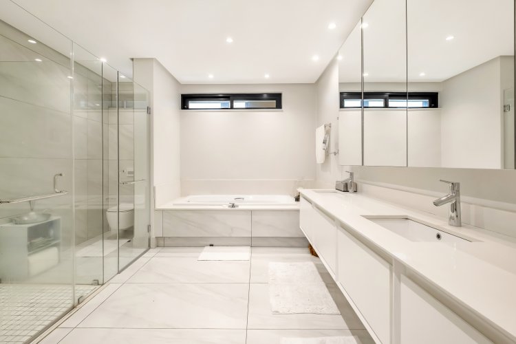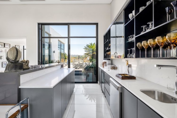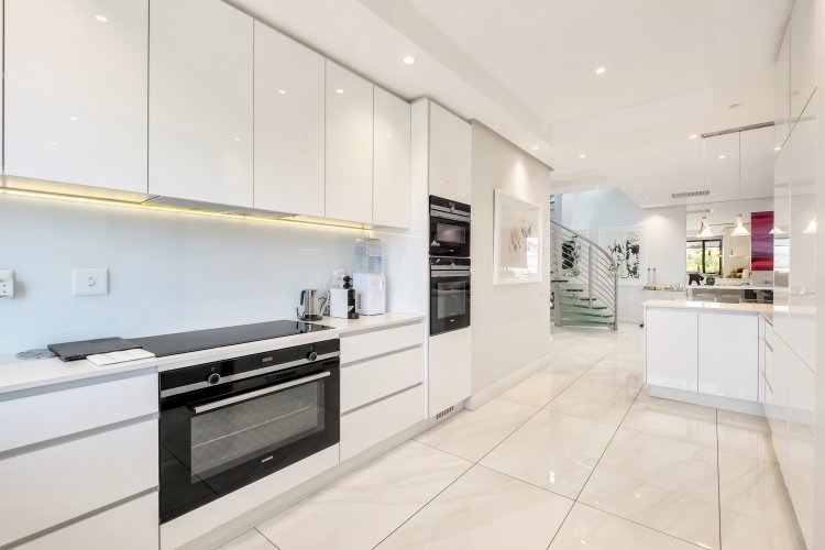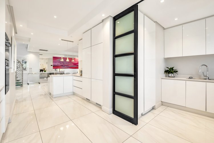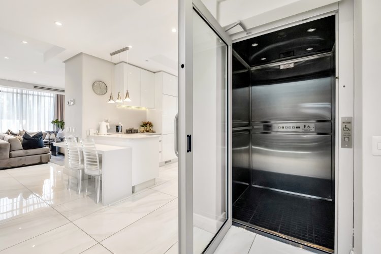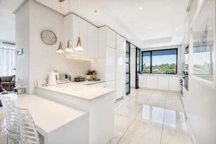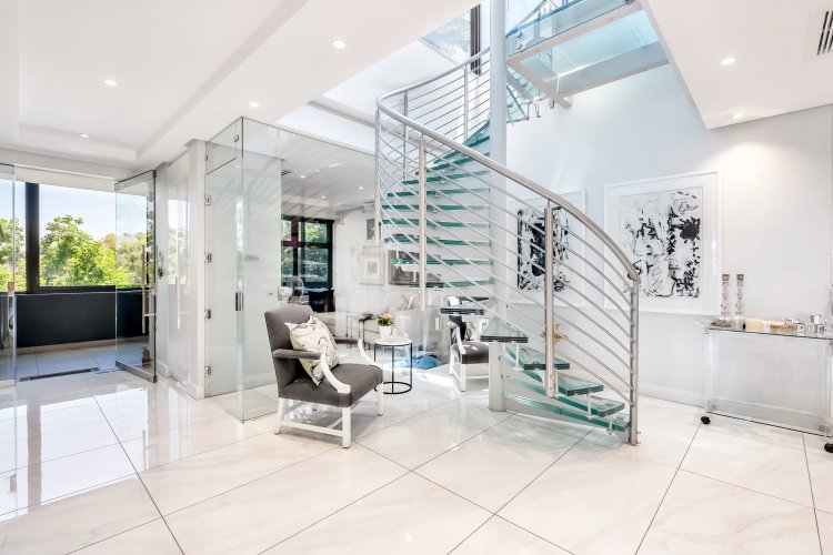 3 ensuite bedrooms (master suite on lower level), private lift provides easy access to the upper level bedrooms, living, dining areas and to the expansive 60sqm entertainer’s roof terrace with spectacular views. 3 receptions on lower level, 3 receptions on upper level, 2 guest cloakrooms and so much more. Vast double volume aluminium-framed double glazed glass draws the skyline inward. Interiors designed with refined precision. The penthouse is appointed with an internal lift between floors, central climate control air conditioning, Caesarstone surfaces, lacquered cabinetry, integrated appliances – crafted to the highest specification. Entry on lower level to 3 expansive open plan living areas, a chef’s kitchen, scullery & large balcony overlooking Melrose Arch. 2 en-suite bedrooms sit in quiet privacy; the master suite with bespoke walk-in wardrobe & generously proportioned full bathroom. Continuity in design flows throughout all en-suite bathrooms, soft sheer-weave blinds fitted throughout the apartment filtering the light. A bespoke study & guest toilet completes the lower level.