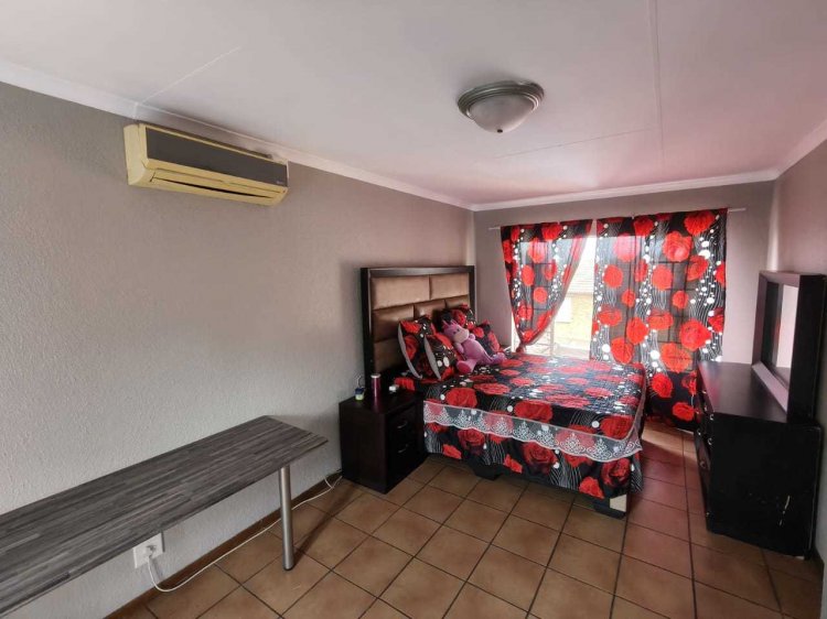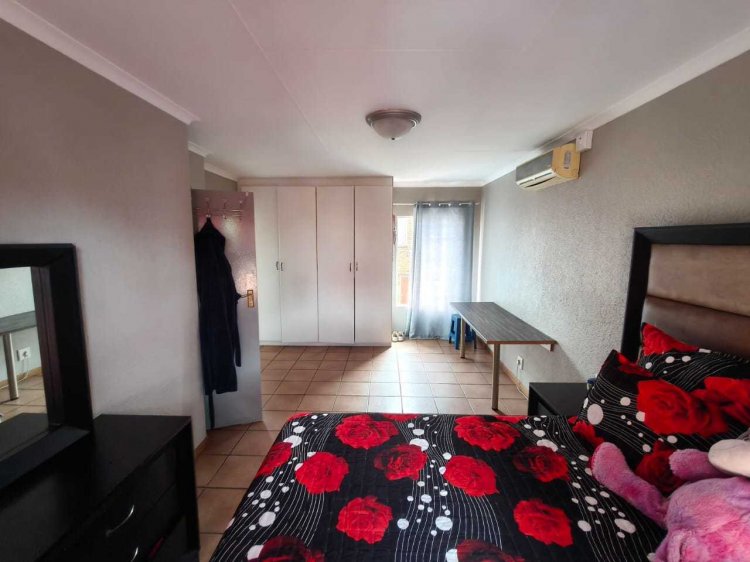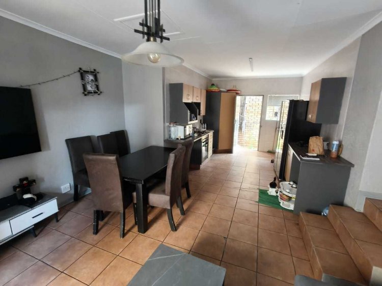 Welcome to this well-designed duplex apartment in the popular Arendskloof complex in Safari Gardens, offering space, flexibility, and comfortable living. Downstairs, you are welcomed by an open-plan lounge, dining area, and kitchen that flow together beautifully. This layout creates a warm and inviting space for everyday living and entertaining. Also on the ground floor is an extra room with its own private entrance, ideal for guests, extended family, a home office, or rental potential. Upstairs, the home offers two comfortable bedrooms and two bathrooms. The main bedroom features an en-suite bathroom, providing privacy and convenience. Step outside to the backyard where you will find a built-in braai, perfect for relaxed evenings and weekend get-togethers. The single garage offers more than just parking — it includes a laundry area as well as a toilet, shower, and basin. This space can easily be converted into a bachelor flatlet, adding excellent value and extra income potential. There is also open parking available in front of the garage. This duplex apartment is ideal for families, professionals, or investors looking for a versatile home in a sought-after area. It offers comfort, practicality, and great potential in a secure and well-located complex.