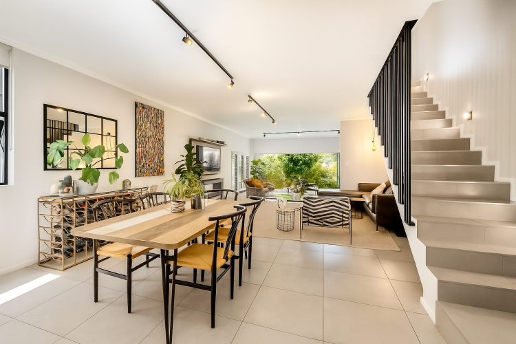From the moment you step inside, the light filled open-plan living and dining areas extend gracefully through stacking glass doors to a tranquil private garden, where indoor and outdoor living blend in perfect harmony.