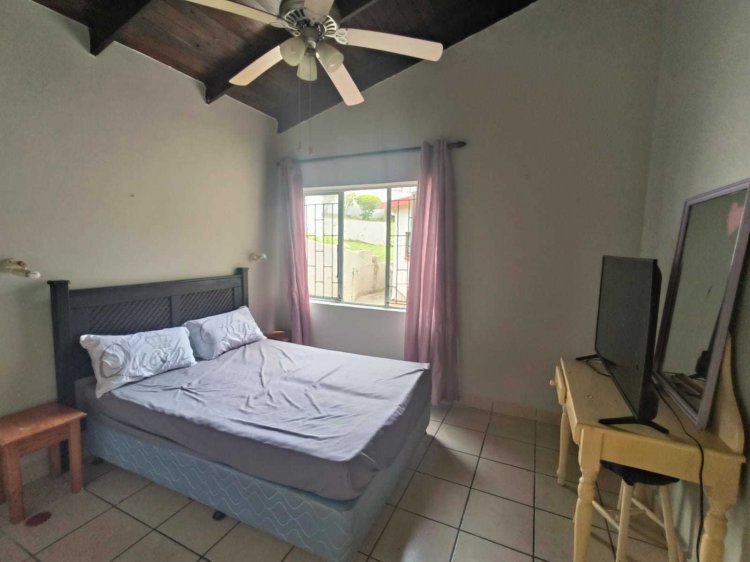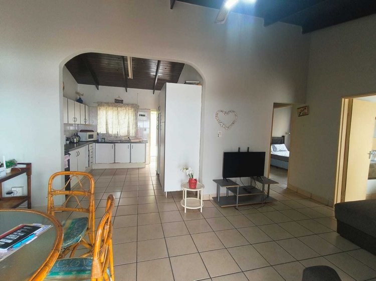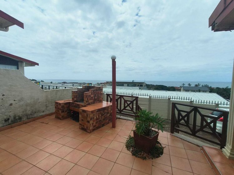 Property Features • Prime Location: Walk to shops, restaurants, the beach, and leisure spots • 3 Bedrooms: Cleverly partitioned into 2 self-contained units for versatile living or rental income • 2 Kitchens: Each section has its own open-plan kitchen with built-in cupboards • 3 Bathrooms: o Main bedroom ensuite with bath and shower o Second bathroom with bath o Third bathroom with shower • Comfort Features: Air conditioner and ceiling fans • Outdoor Living: o 2 large raised patios – one enclosed, one covered o Panoramic views of the ocean and Shelly Beach o Braai area for entertaining • Complex Amenities: Swimming pool for residents • Security & Parking: Fully walled property with open parking