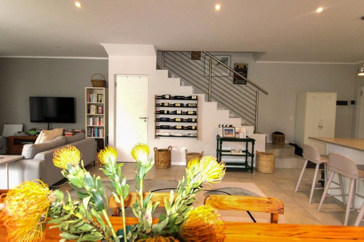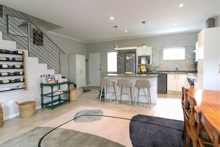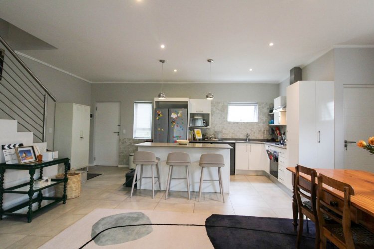 Step into style and sophistication with this beautiful modern duplex, designed for effortless living and relaxed entertaining. Features include: 3 spacious bedrooms with sleek laminate flooring 2 full bathrooms plus a convenient guest cloakroom downstairs A gourmet kitchen fitted with a gas hob, electric oven, and a stylish kitchen island — perfect for culinary creativity Open-plan lounge and dining area flowing seamlessly through stackable doors onto a covered patio and private garden Understairs storeroom for added convenience Tiled living areas for easy maintenance and a modern finish Enjoy peace of mind with back-up water and a filtration system, while the complex generator ensures comfort during peak loadshedding times. Includes 2 covered carports, clear burglar bars on downstairs windows, and custom-made curtains plus block-out blinds for a touch of luxury. Ideally positioned near top schools, shopping centers and lifestyle amenities, this home offers the best of modern convenience and style. Pet friendly for a max of 2 pets - small dogs, cats or birds with prior written consent from the trustees. Get in touch today to arrange your private viewing — your next chapter begins here!
