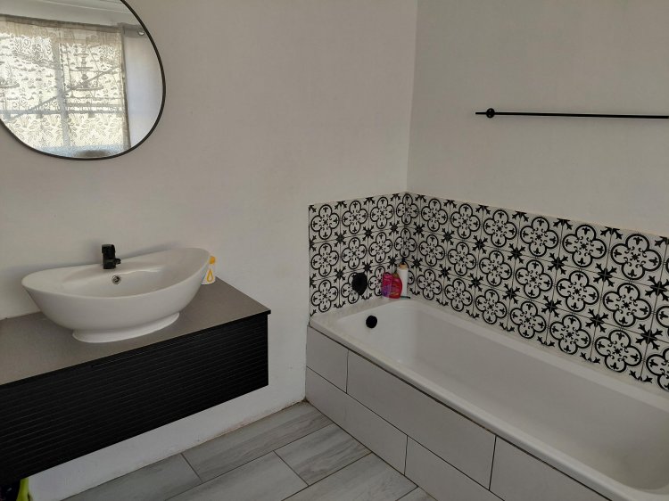Property Features: • 3 Bedrooms with built-in cupboards • Family bathroom • Spacious main bedroom with modern en-suite bathroom • Open-plan lounge and dining area with beautiful wooden flooring • Well-fitted kitchen with built-in cupboards, gas stove, and electric oven • Scullery with Novilon flooring and laundry corner • Tiled and wooden flooring throughout • Inviting front stoep and welcoming entrance