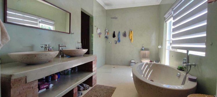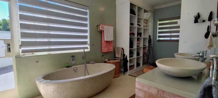 Down the passage, you’ll find two well sized guest bedrooms, each with built-in cupboards, serviced by a full guest bathroom complete with bath and shower. The spacious master suite features a full en-suite bathroom, a walk-in wardrobe, and private patio access, your own retreat within the home.