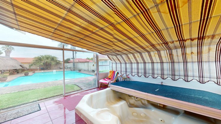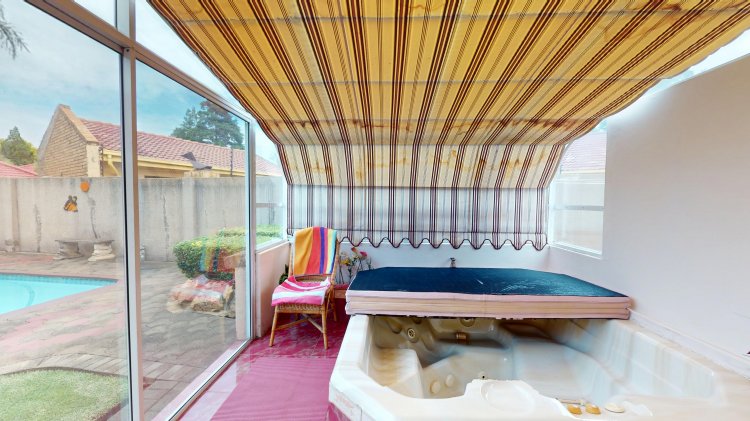 Step outside and enjoy an inviting entertainment space with a sparkling swimming pool and a lapa, perfect for weekend braais and gatherings with family and friends. The property also offers a double garage for secure parking.