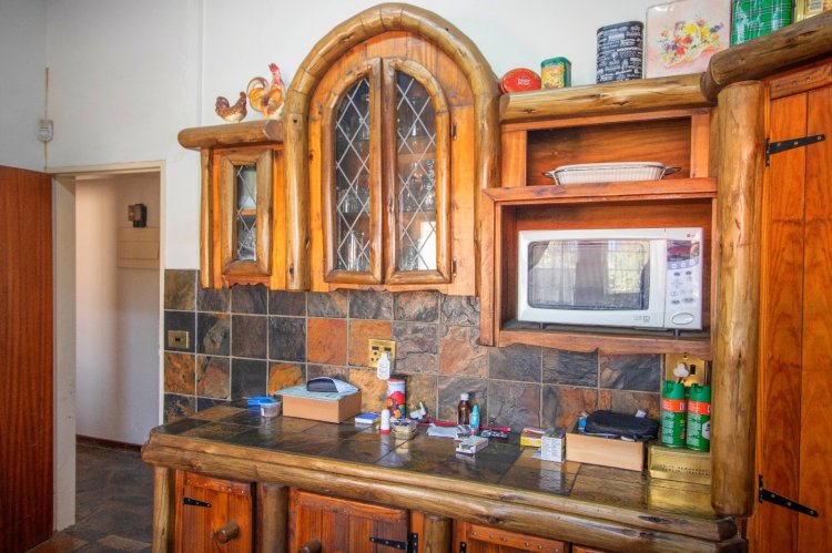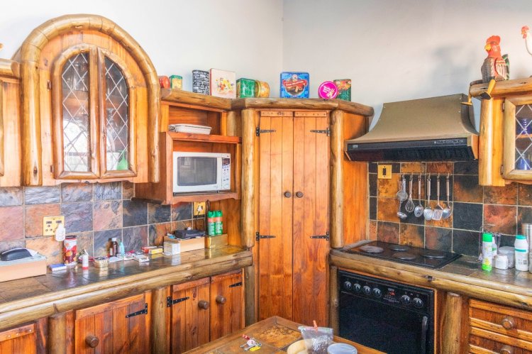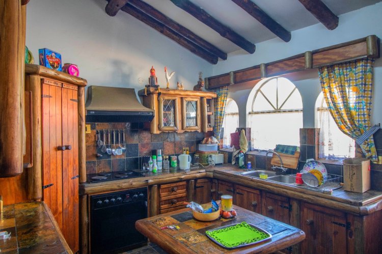 The home features two inviting living areas, perfect for family gatherings or entertaining guests. The warm wooden kitchen adds character and practicality, offering ample cupboard space and a welcoming atmosphere for meal preparation.