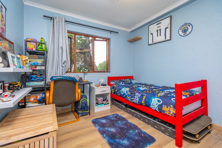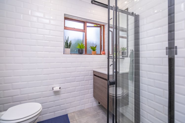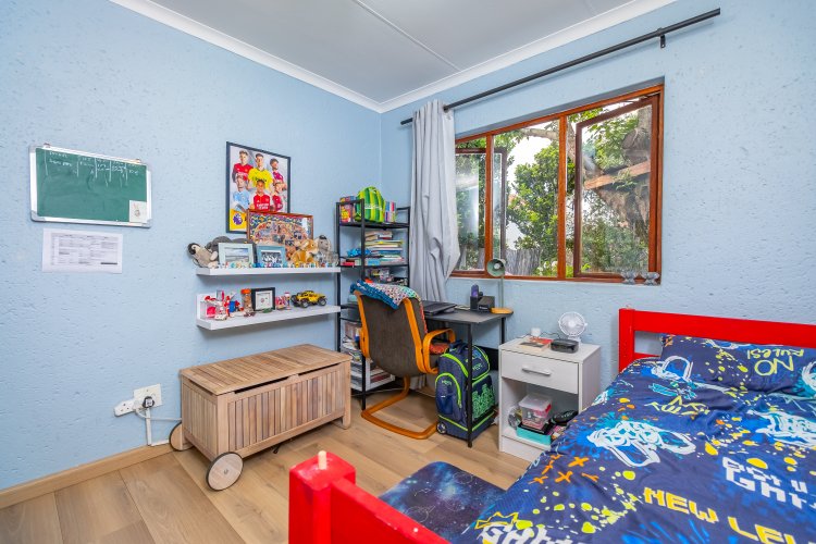 Accommodation includes three bedrooms with built-in cupboards and two brand-new, modern bathrooms, with the main bedroom featuring a full en-suite. Stylish laminate flooring runs throughout the home.
