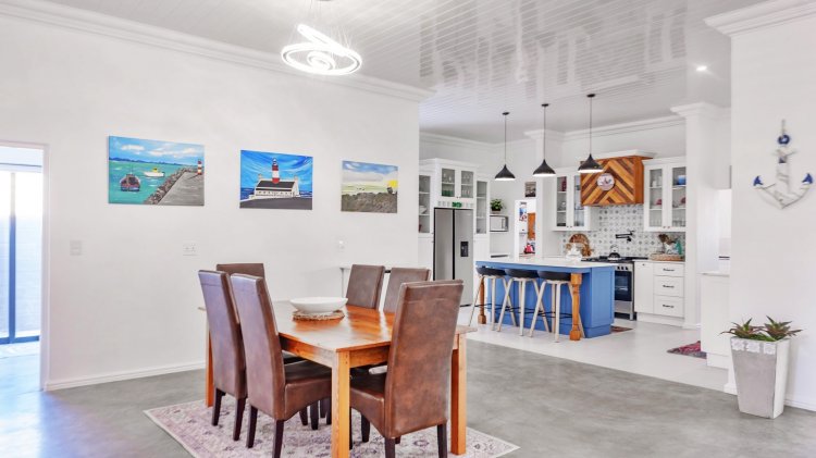 This contemporary and well-maintained home is located in a quiet cul-de-sac in Agulhas and enjoys elevated positioning with views of the ocean and the Zoetendalsrug mountain range. Designed with space, comfort, and functionality in mind, the property is ideal for family living or use as a holiday residence.