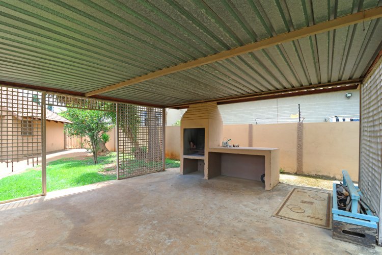 Covered patio with a built in braai.