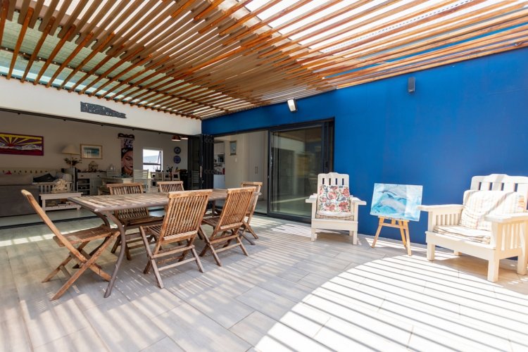 This beautifully designed modern home is situated in the highly sought-after Atlantic Sands North estate, offering the rare privilege of private gated access directly to the beach from within the estate. The house features three spacious bedrooms, two with its own on-suite bathrooms fitted with elegant his-and-hers basins. An additional family bathroom ensures comfort and convenience for guests and family members. The outdoor entertainment area is truly exceptional, boasting a stylish braai area and a 2 x 4 meter splash pool complete with water features—perfect for relaxed coastal living and entertaining. Inside, the home offers open-plan living at its best. The generously sized lounge and dining areas flow seamlessly into a modern, well-appointed kitchen with a separate scullery providing ample cupboard and packing space. The master bedroom overlooks the pool area, creating a serene private retreat. Additional features include a hybrid inverter system, aluminium doors and windows frames, a double garage, and extra parking spaces outside the home. This property combines modern luxury, functionality, and a prime coastal location—an ideal home for both permanent living and holiday enjoyment.