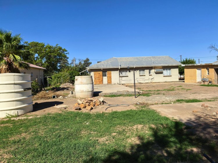 Situated in the Lande, this property has great potential and offers value for your buck ! Large stand of 1454 sq meters. This property has an equipped borehole which adds tremendous value. Outbuildings include a single garage and other rooms etc which could easily be converted into a flatlet. Outbuildings do need some TLC The home comprises of three bedrooms, one bathroom , large lounge (with fire place and air con) and an adjoining spacious dining room. The kitchen has plenty of cupboards with a built in stove and oven. Please contact me for more information. Viewing is strictly by appointment only. While every care has been taken in the description and listing of this property, neither the seller nor the property practitioner will accept liability for any error and/ or omission.
