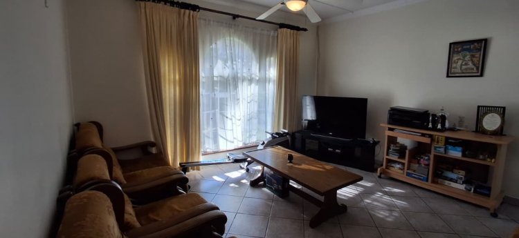 This well-maintained three bedroom home is situated in a prime and secure area, offering comfort, space, and modern convenience. The main bedroom features a walk-in-closet, an en-suite with a Jacuzzi, and opens onto a private patio overlooking the swimming pool. The two additional bedrooms are well sized and both fitted with built in cupboards, offering ample storage space. There is a family bathroom with a shower.