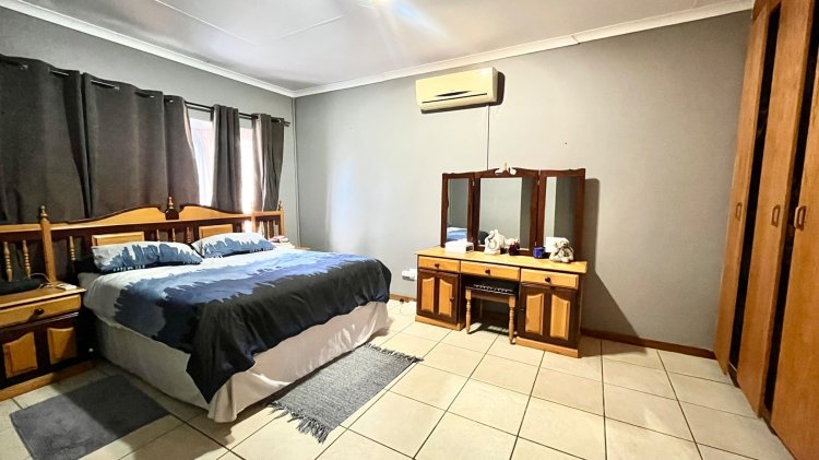 The bedroom wing offers three well-sized bedrooms, serviced by a guest bathroom. The main bedroom is spacious and comfortable, complete with air-conditioning and a full en-suite bathroom.