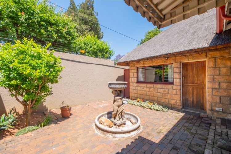 Entertaining is a delight with a dedicated entertainment area that boasts a bar, a covered patio with built-in braai, and a sparkling swimming pool surrounded by a tranquil garden setting. Whether you’re hosting a weekend braai, relaxing with friends, or enjoying a quiet dip, this outdoor space is the heart of the home.