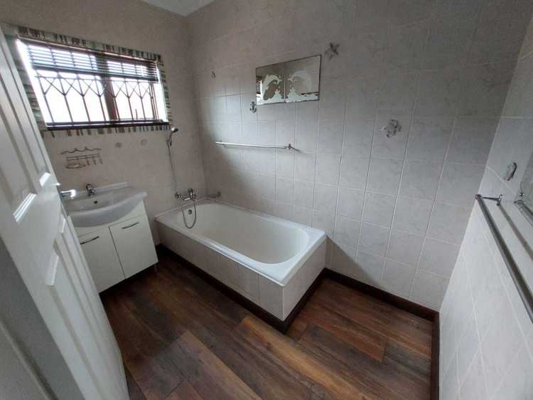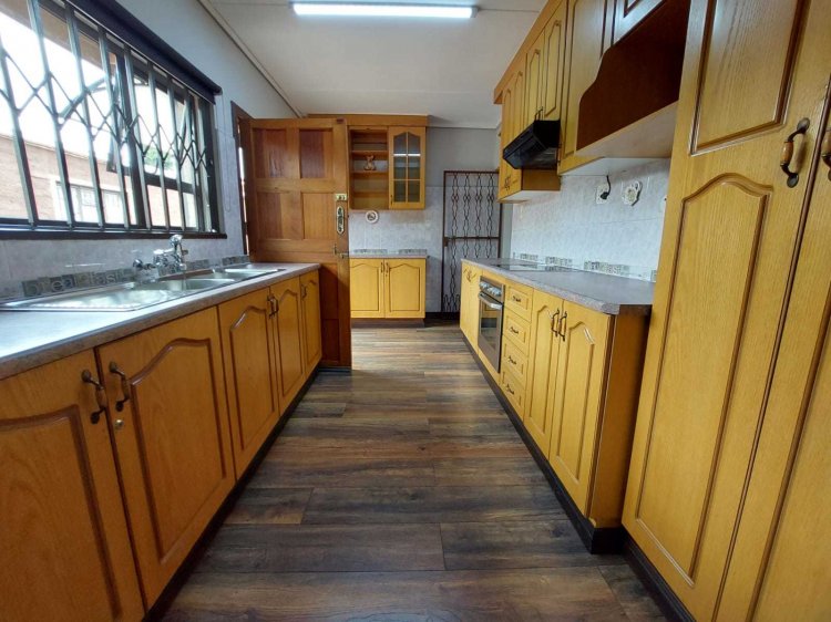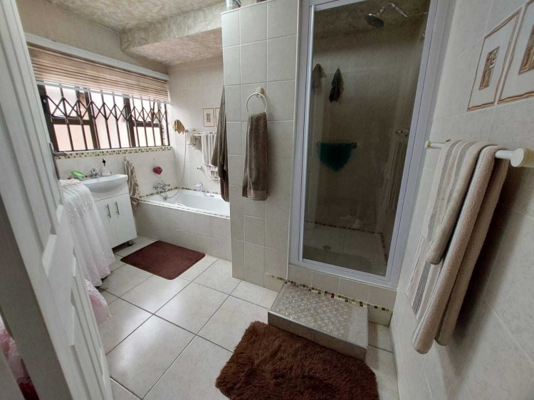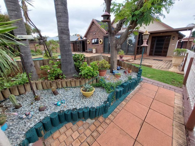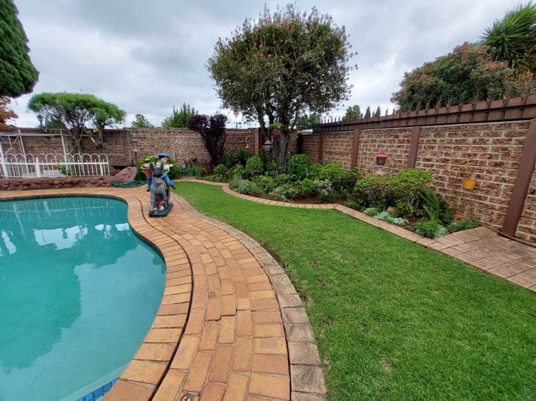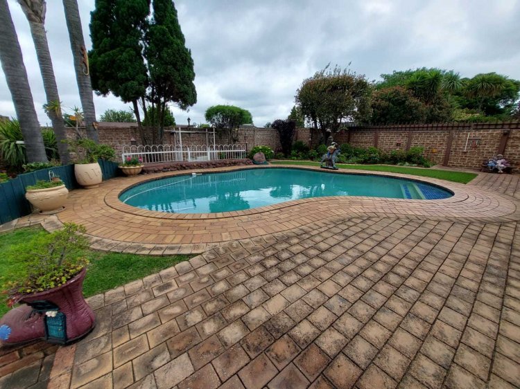 Looking to buy, but not up for renovations? This immaculate, move-in-ready family home is waiting for its new owners! Nestled in a quiet and established neighborhood, this property offers exceptional value for money with its classic touches and timeless charm. Main House Features: • 3 Spacious bedrooms, including a main bedroom with air-conditioning, walk-in closet area, and a luxurious en-suite (toilet, bath, and shower). • An additional room ideal as a study or guest bedroom. • Modern kitchen with ample cupboard space. • Dining area with a built-in server cabinet. • Rectangular lounge perfect for welcoming guests and a separate TV room for family relaxation. • Patio/Sunroom for those lazy Sunday afternoons, plus a covered entertainment patio — both with sliding doors leading out to the sparkling pool. • Downstairs bathroom and guest toilet for added convenience. • Beautiful staircase connecting the living areas seamlessly. Flatlet: Perfect for extended family or rental income potential! • 2 Bedrooms (main with en-suite and built-in cupboards). • Spacious open-plan kitchen and living area. • Additional bathroom with shower and bath, plus a separate toilet. • Private entrance, garage, and carports (1 garage, 2 carports, plus 3 extra parking spaces). Outside Features: • 2–3 vehicle garage with electric roller doors (main house). • 2 additional carports (main house). • Laundry room and small storage room. • Heated swimming pool, neatly paved driveways, and beautifully maintained gardens front and back. • Electric fencing and security cameras for peace of mind. You do not want to miss out on this opportunity! Contact me today for your exclusive viewing.