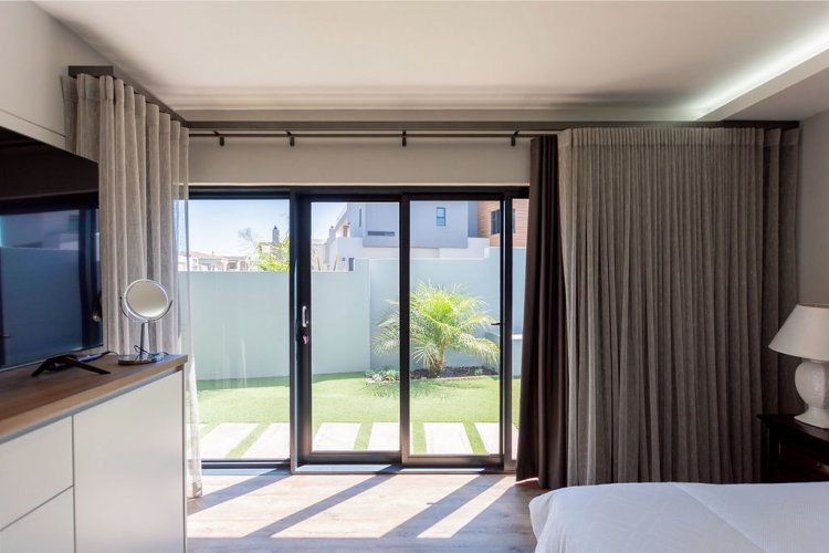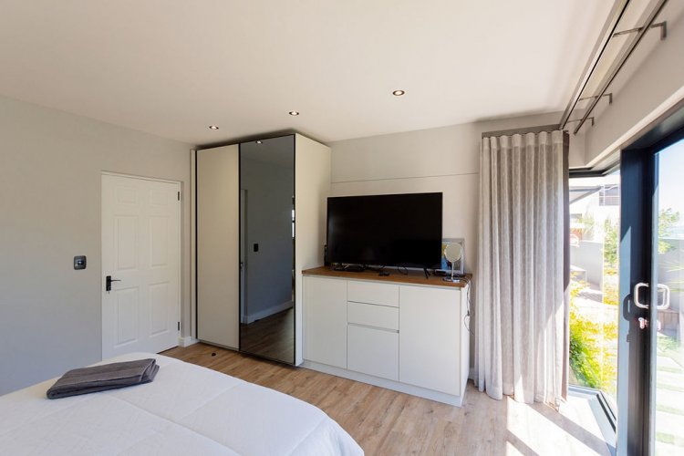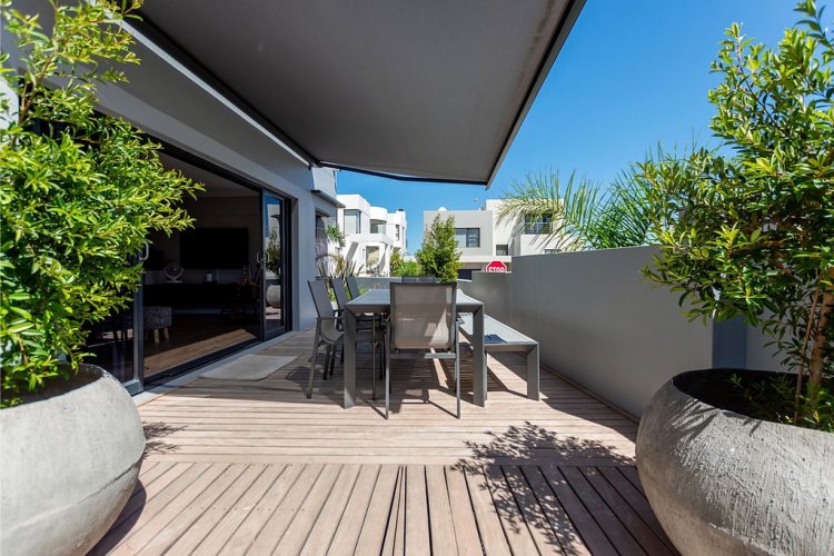 Practical considerations have been addressed with an extra-large tiled garage featuring built-in cupboards for additional storage, as well as a solar inverter system supporting energy efficiency and uninterrupted power supply. The property is well positioned close to all amenities including Laguna and Nautica Malls, Curro Private School, and established medical facilities, offering everyday convenience alongside estate security.