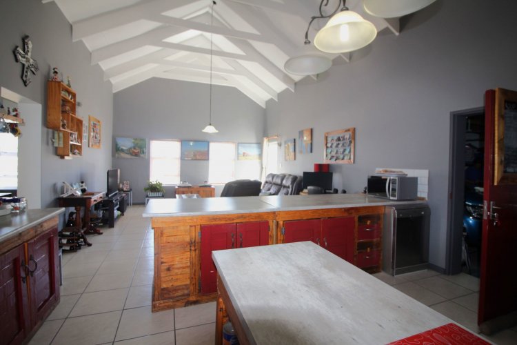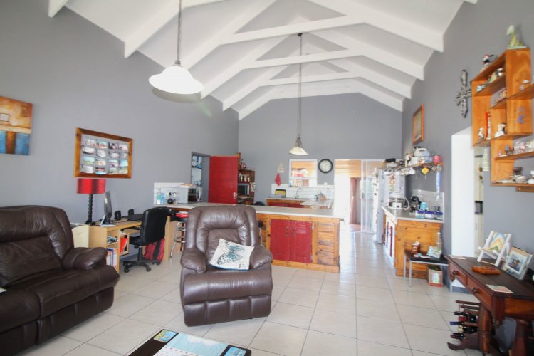 Step inside and be greeted by a spacious open-plan living area, complete with exposed beams and double volume ceilings. The seamless flow leads you to an inviting kitchen that boasts ample built-in cupboards and a serving island that is perfect for entertaining family and friends. With space for a dishwasher, keeping your culinary haven clean becomes a breeze.