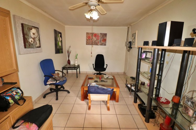 There is pre paid electricity. Spacious lounge Separate dining room. Kitchen with lots of cupboards Three bedrooms Main en suite Another bathroom Additional parking Pool Braai area by the pool Granny flat consisting of Lounge, Kitchenette bedroom and bathroom One carport Corner stand with two entrances