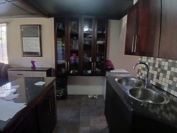 This beautiful corner stand home offers 3 well-sized bedrooms, all fitted with built-in cupboards, and 1.5 bathrooms. The open-plan lounge and dining area creates a warm and welcoming atmosphere, perfect for family living. The kitchen is equipped with built-in cupboards, a built-in stove, and a separate scullery for added convenience.