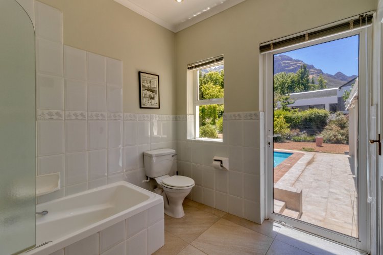 The plot boasts over 2000m2 of ground where the home is surrounded on three sides by an exceptionally beautiful, mature garden, brimming with flowers. It has an irrigation system supplied by the borehole and designed specifically for low maintenance. The plot is so unique that it was first reserved by the original architect who established the layout of the estate. Location , location, location!