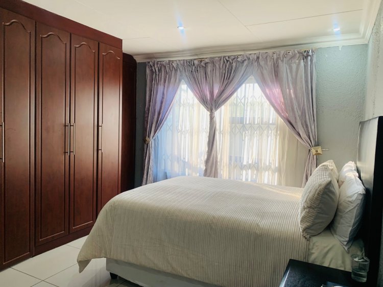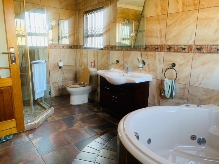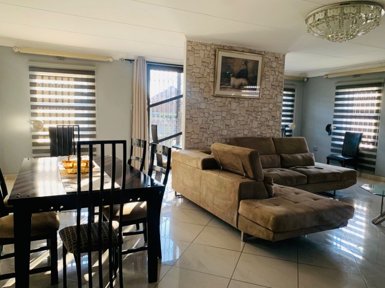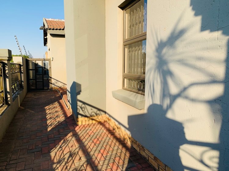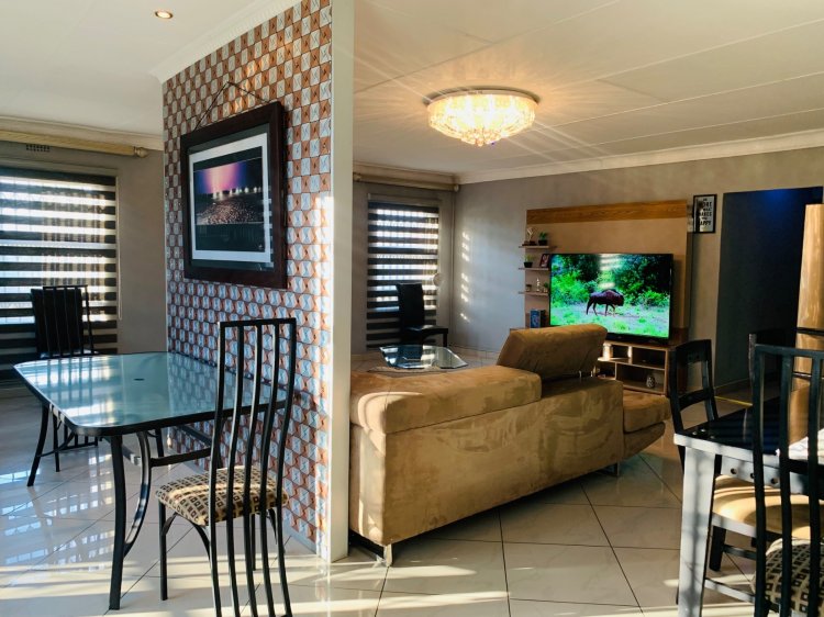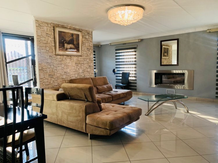 This stunning single-storey home stands proudly on a corner lot, blending modern luxury with sustainability. Ideal for those who value elegant living and an appreciation for nature, this property is a masterpiece. At its heart lies a spacious open-plan area seamlessly connecting the lounge, dining, and living room, complete with a built-in fireplace for cozy evenings or entertaining guests. The chef's kitchen comes fully equipped with top-of-the-line appliances. The first bedroom is generously sized, featuring built-in cupboards and an en-suite bathroom. The second bedroom is equally spacious, offering ample built-in storage. The master suite welcomes you with an open-plan living and sleeping area, abundant built-in cupboards, an en-suite bathroom, and a private study. Parking is effortless with double automated garages, and security is top-notch with CCTV, an alarm system, electric fencing, and additional outdoor beams. A geyser powered by electricity or gas adds further convenience. Join the Geluksdal community by making this exceptional home yours. Call us today for a viewing and experience this gem firsthand!