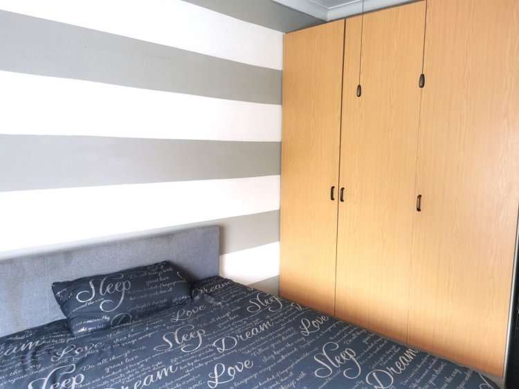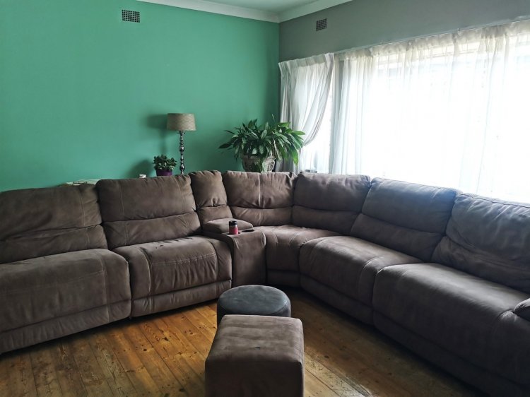 The kitchen offers plenty of cupboard and counter space, along with an electric stove and oven—ideal for preparing family meals. A convenient serving hatch connects the kitchen to the dining room, making it easy to chat and stay connected while cooking. The lounge is spacious and inviting, perfect for relaxing together at the end of the day.