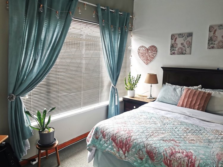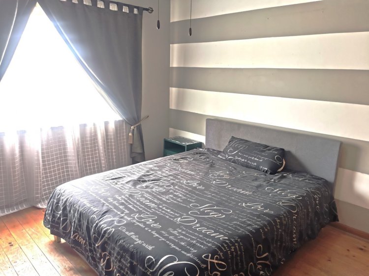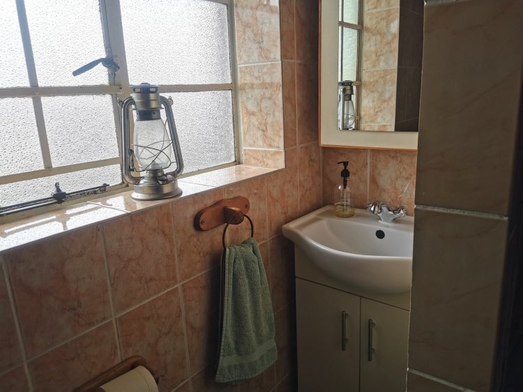 The home offers three generously sized bedrooms, all with built-in cupboards. The main bathroom includes a shower, toilet, and basin. The master bedroom is light and spacious, offering plenty of cupboard space and a private en-suite bathroom with a bath, toilet, and basin.