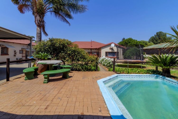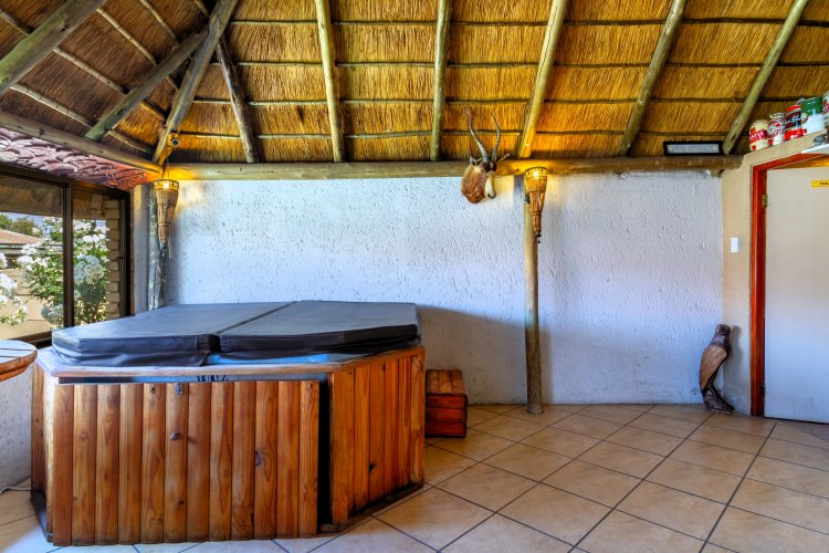 Outdoor living you will find a Harvey tiled roof Lapa with stack doors and an electric geyser, build in braai and bar; Jacuzzi and one bathroom. Great for outdoor dining. A well established and maintained garden with a splash pool – great for the kids and for those hot summer days. Separate storeroom with ample cupboard space.