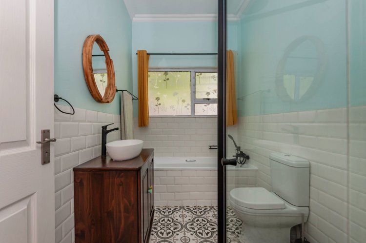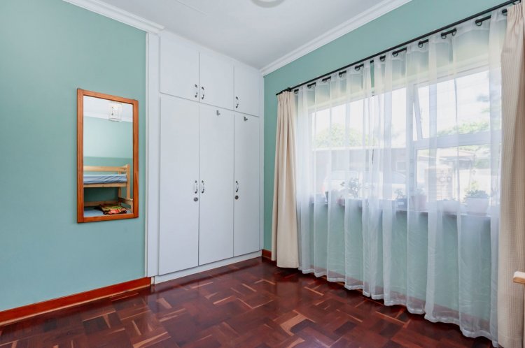 The main bedroom features an ensuite bathroom, built-in cupboards and tiled floors. Bedrooms 2 and 3 boast built-in cupboards and classic parquet floors adding warmth and character. Additional bathroom with a guest toilet, ensuring convenience for family and guests Dedicated study area with tiled floors, perfect for remote work or quiet reading sessions.