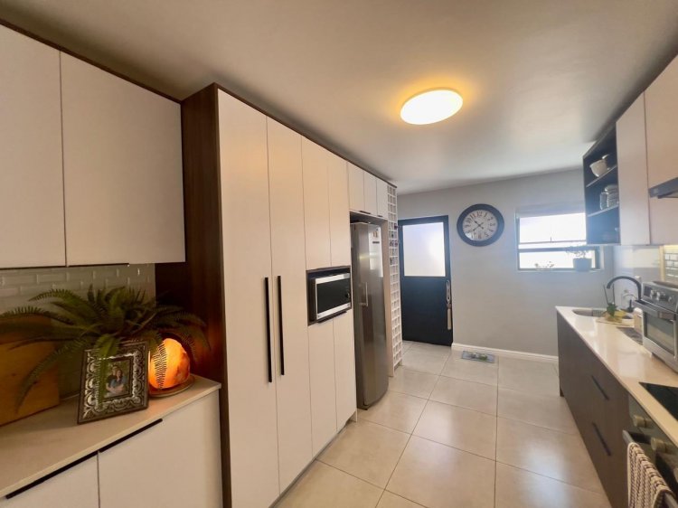 • 3 Spacious bedrooms (all overlooking green belt) • Main bedroom with ample cupboards and en-suite bathroom • 2 Additional bedrooms with built-in cupboards • Full family bathroom (large shower, bath & basin) • Separate guest toilet • Open-plan living and dining area • Covered patio braai area with canvas shutters • Modern kitchen with generous cupboard space & neat scullery • Double automated garage (higher than standard doors) • Private hot tub with wooden deck