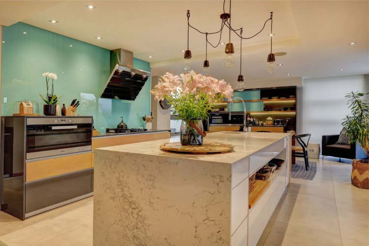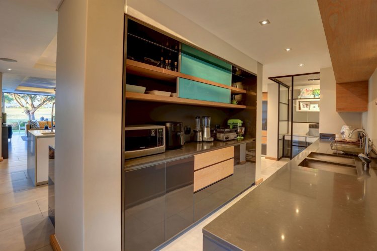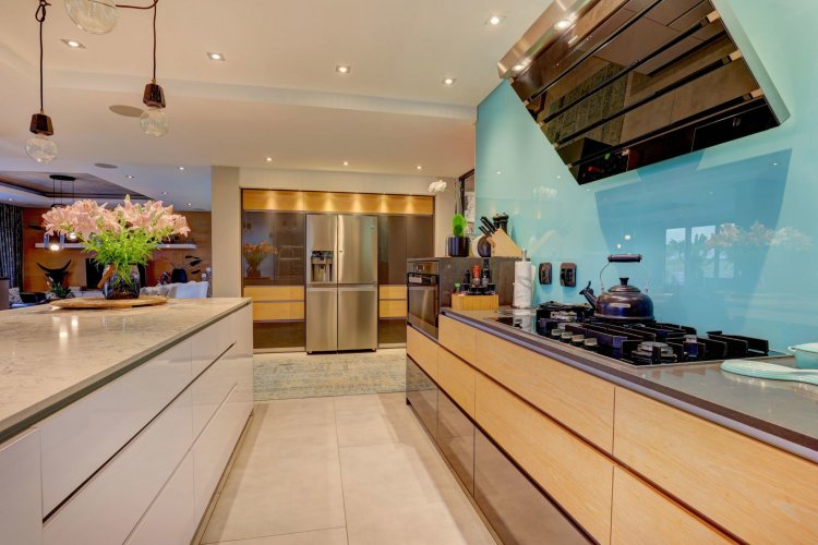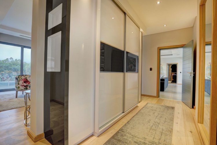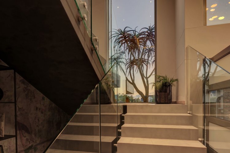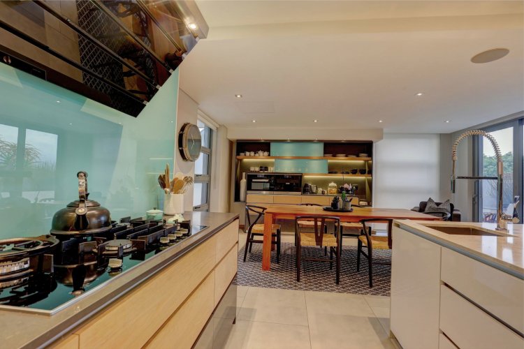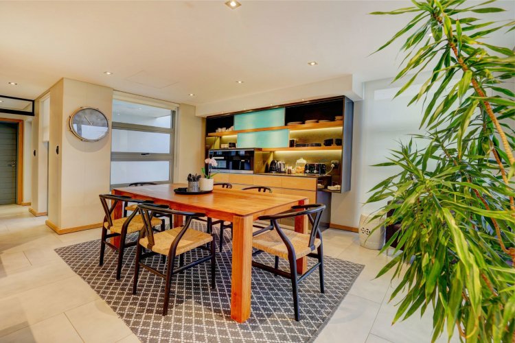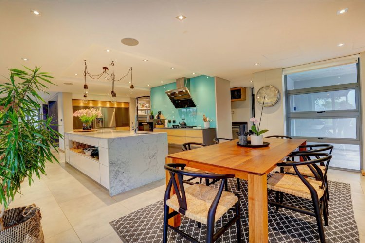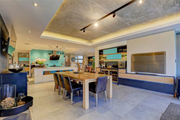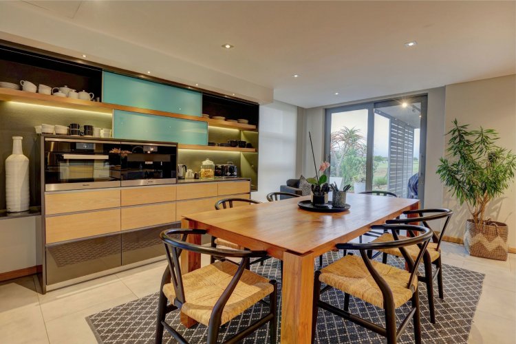 Two beautifully appointed dining areas cater to formal and casual occasions alike. The primary 8 seat dining room includes stainless steel barbeque, minibar, and dedicated entertainment system, while the adjacent “mini” dining room and coffee counter offer a relaxed daily retreat. The open plan kitchen is equipped with premium Miele appliances and a Samsung double door fridge, supported by a scullery and laundry. Mudroom for streamlined functionality. A private office ensures professional connectivity.