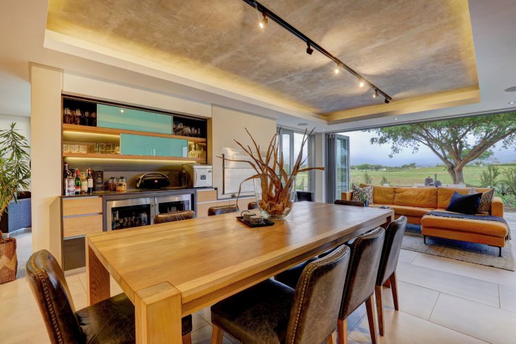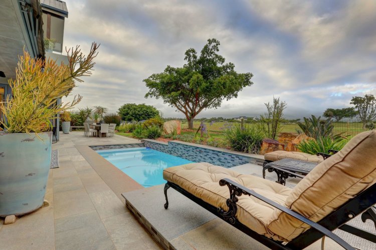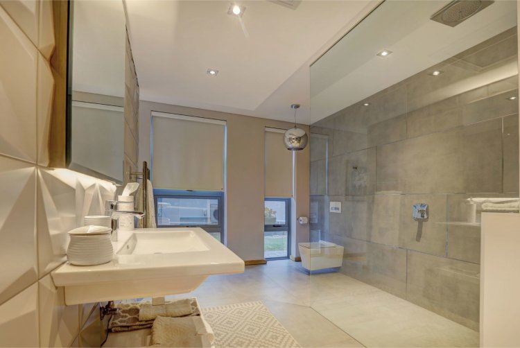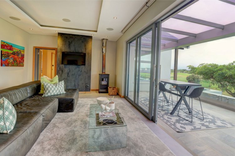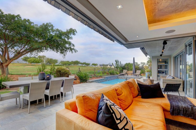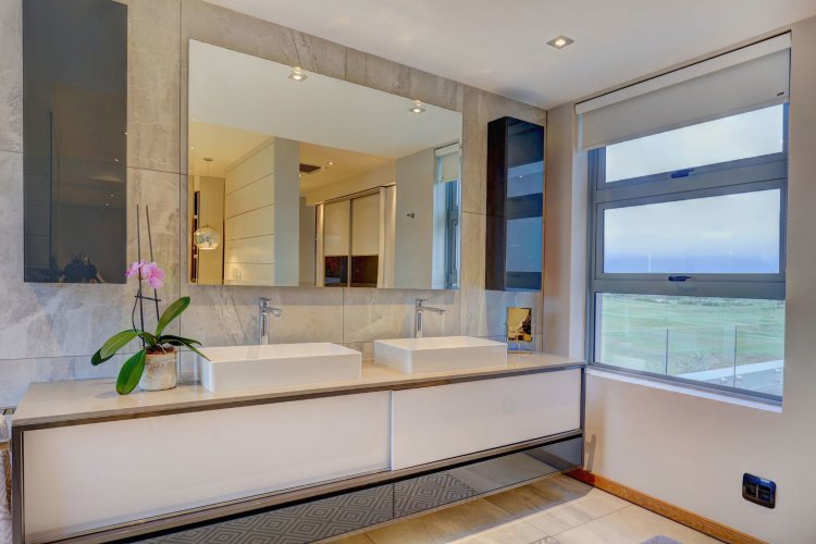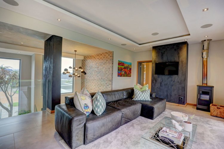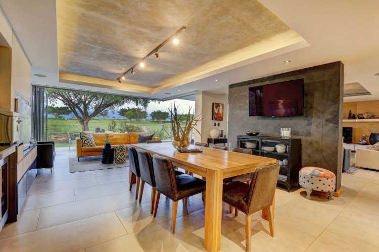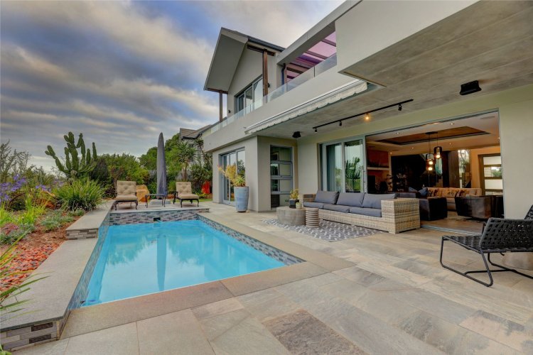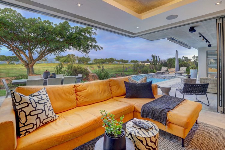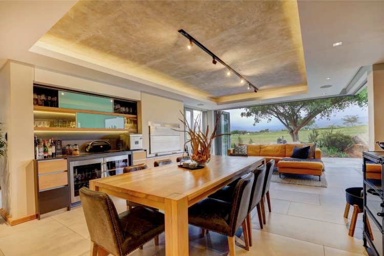 Additional features include an oversized double garage plus full single garage, an 8 KVA solar backup system with batteries and panels, dual geysers, a 5000L underground water tank, and a centralised server cabinet delivering full home Wi Fi. This is luxury estate living at its most considered—elegant, efficient, and perfectly positioned within one of George's premier golf communities.
