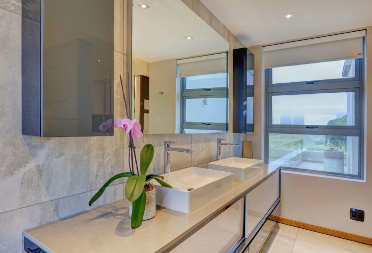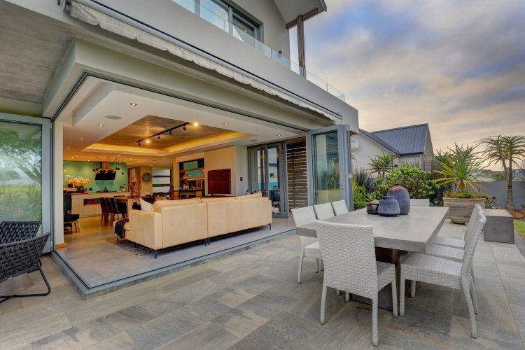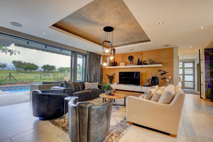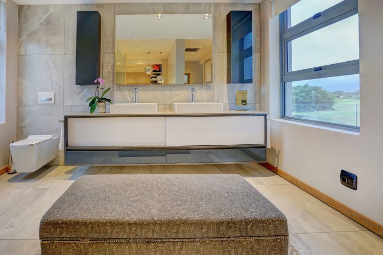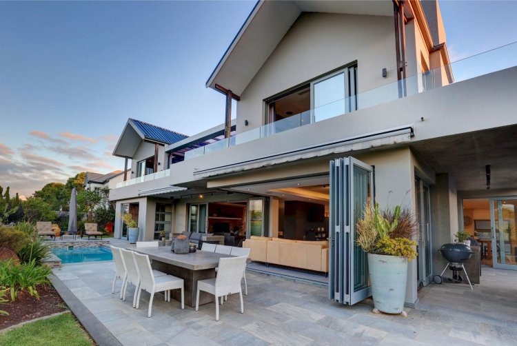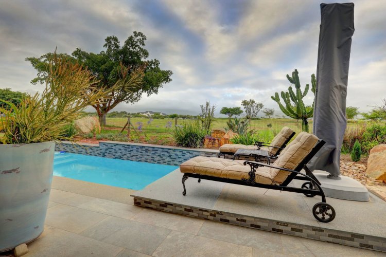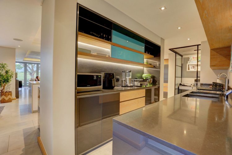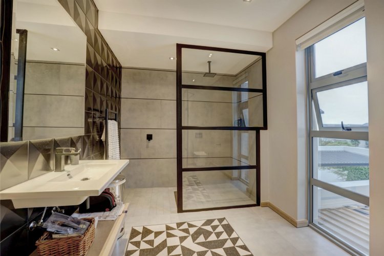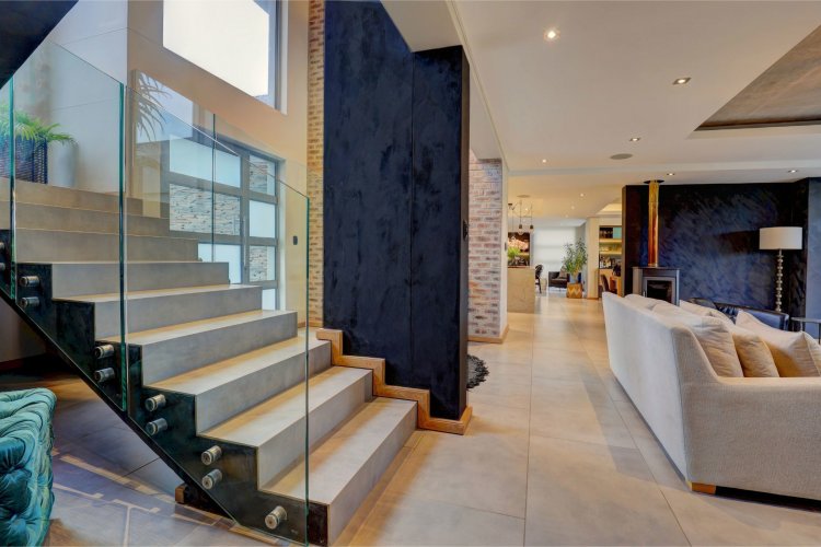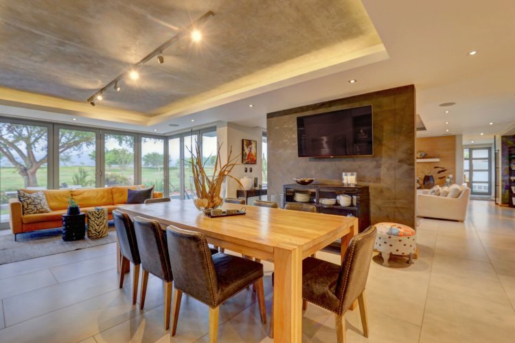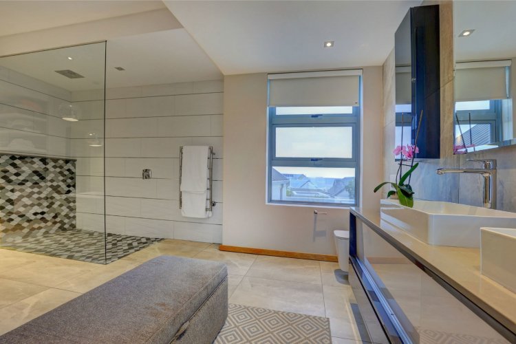 Additional features include an oversized double garage plus full single garage, an 8 KVA solar backup system with batteries and panels, dual geysers, a 5000L underground water tank, and a centralised server cabinet delivering full home Wi Fi. This is luxury estate living at its most considered—elegant, efficient, and perfectly positioned within one of George's premier golf communities.