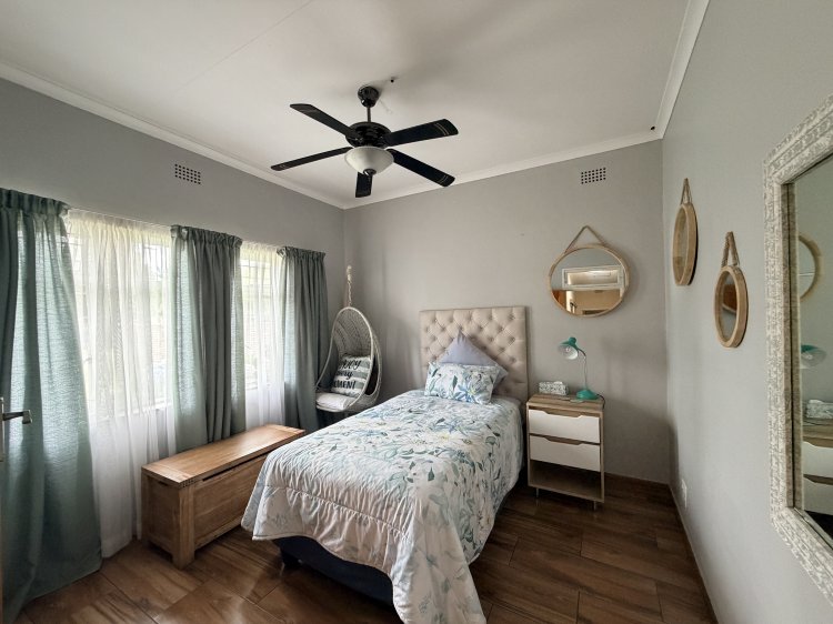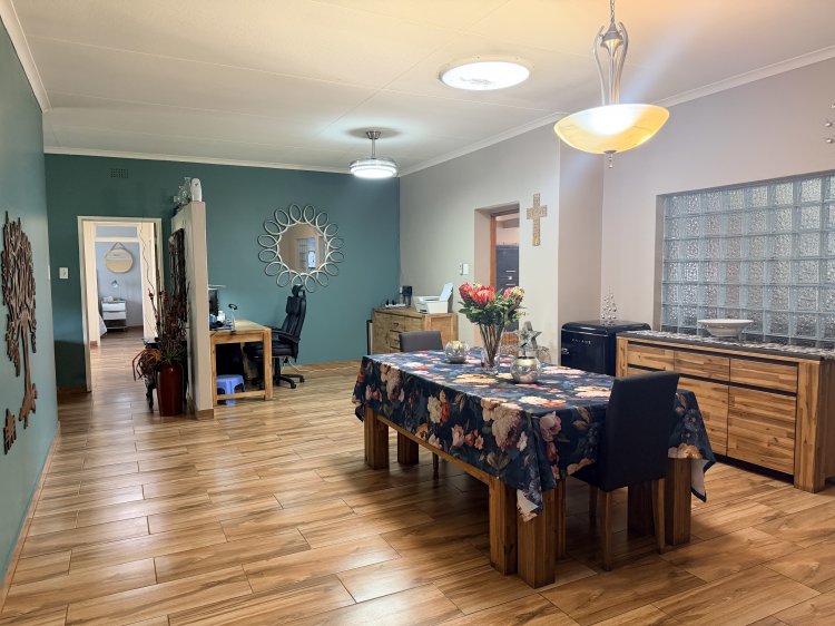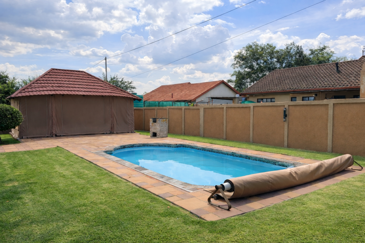 The stunning modern kitchen flows seamlessly into the living room and spacious entertainment area, featuring an indoor braai—perfect for year-round entertaining. Step outside to enjoy a sparkling heated swimming pool and a closed-off lapa, all set within a neatly maintained garden.