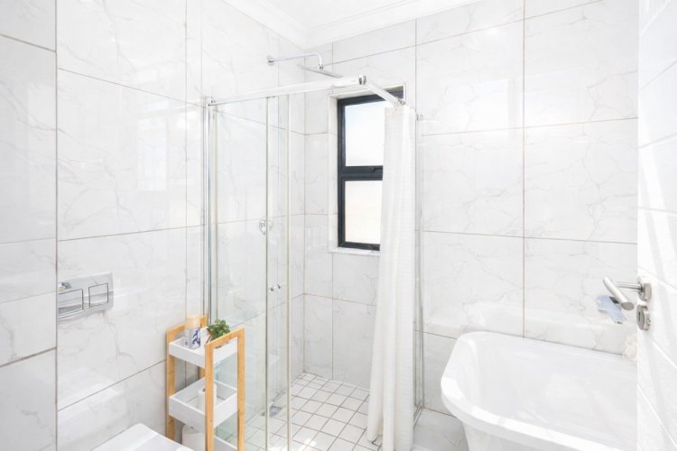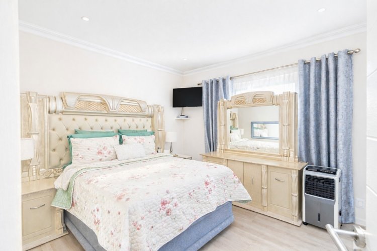 The main bedroom serves as a private sanctuary, featuring ample cupboard space and a luxurious ensuite with a full bathroom.