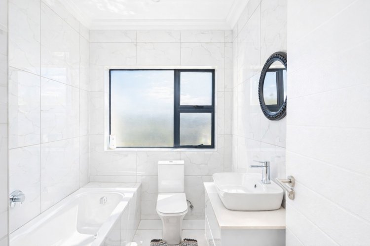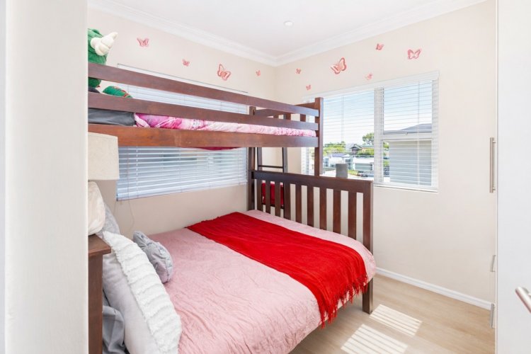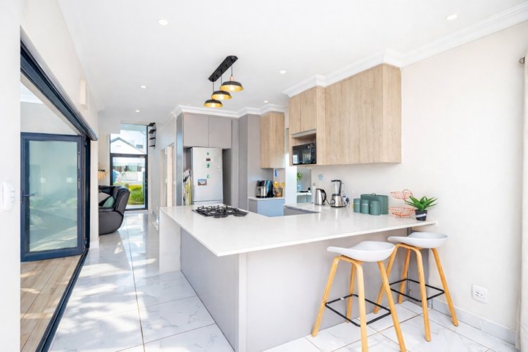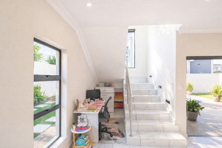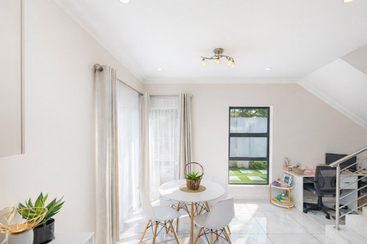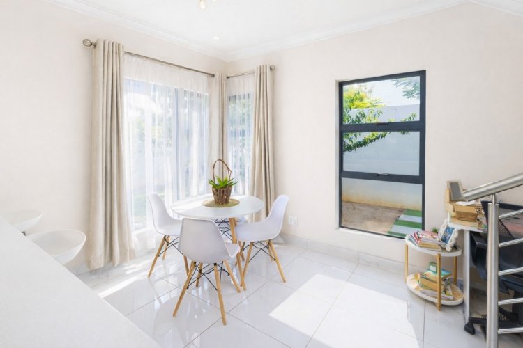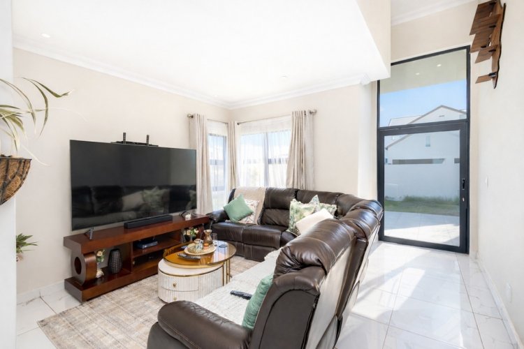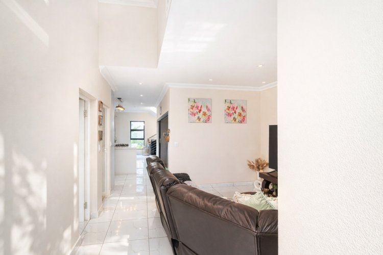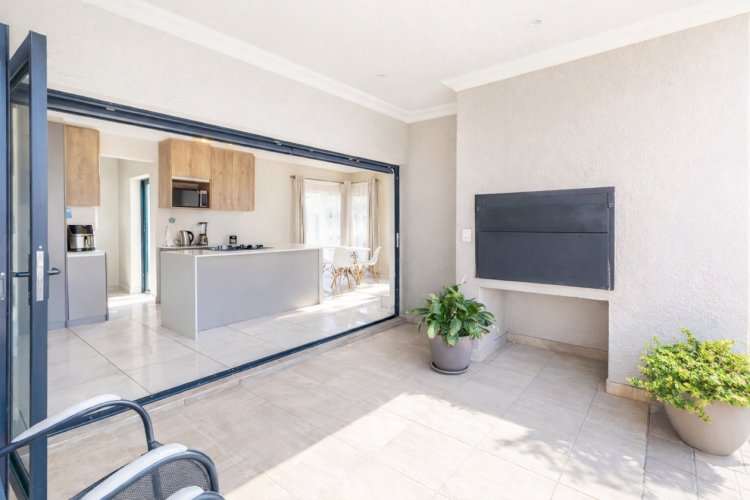 The two additional bedrooms are share a stylish bathroom with a bath, ideal for family living. Step outside to a beautifully manicured garden and a spacious yard, where a covered patio with a built-in braai creates the perfect setting for outdoor entertaining. The home also boasts a luscious pool and modern finishes, with the added convenience of a weekly garden service to keep the outdoor space pristine.