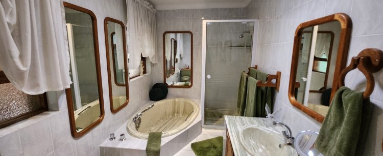 Extras include four garages, ample parking, domestic rooms, and a pet-friendly setup. Security is taken care of with electric fencing and burglar bars.