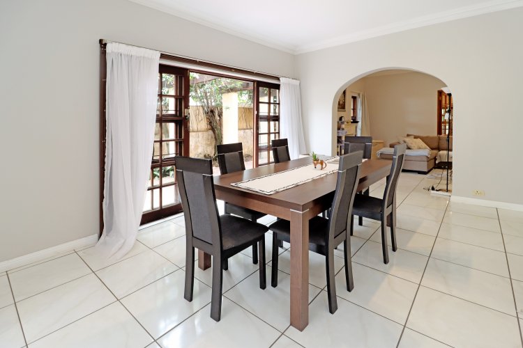 A massive floor plan where the sitting room and dining area flow effortlessly into a spacious entertainment room.
