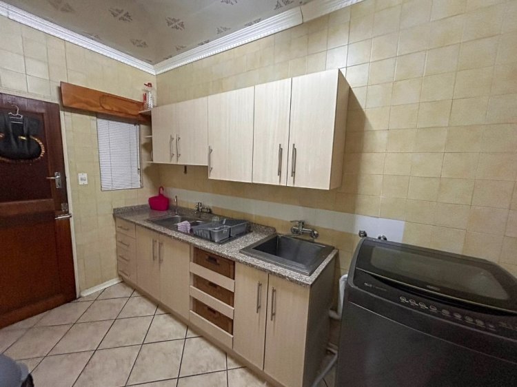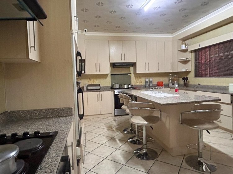 At the heart of the home is an open-plan living area that seamlessly connects to a cozy TV lounge and a dining area with laminated flooring. This inviting space is perfect for family gatherings or hosting guests. It also leads to a private patio for some added entertainment space. The kitchen is a modern culinary haven, boasting granite countertops, a combination gas and electric stove, and a separate scullery that serves as both a washing and laundry area.